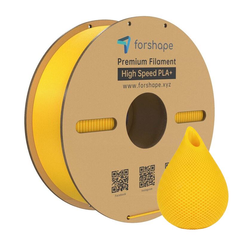 The High-Speed PLA+ Forshape Yellow filament (high-speed PLA) allows printing at speeds up to 600 mm/s thanks to its unique formulation combining high fluidity and rapid cooling.