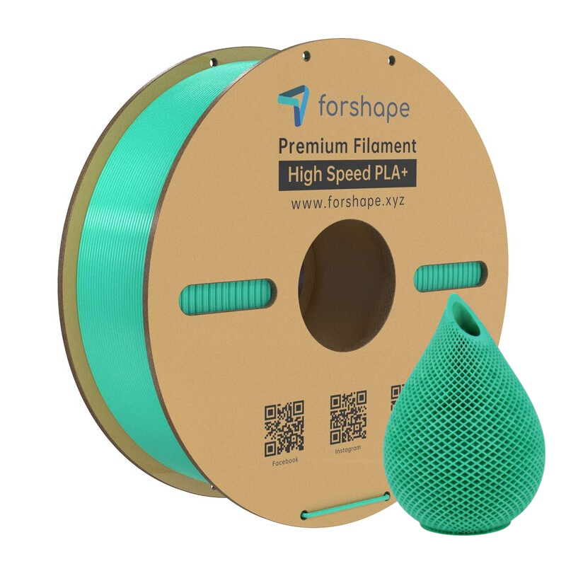 The High-Speed PLA+ Forshape Green filament (high-speed PLA) allows printing at speeds up to 600 mm/s thanks to its unique formulation combining high fluidity and rapid cooling.