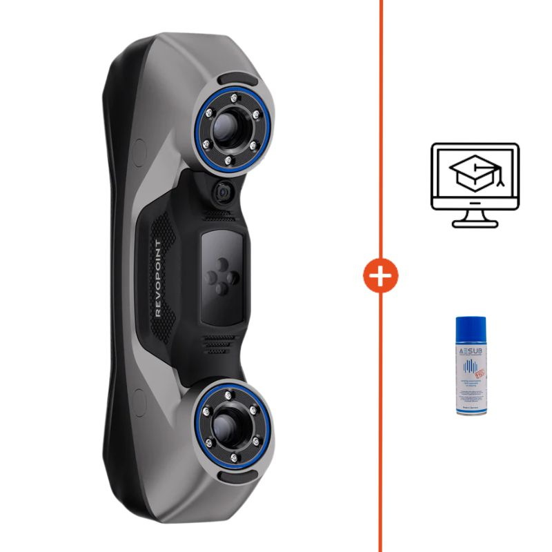 Equipped with an HD RGB camera and compatible with Revo Metro and Revo Design software, it provides realistic color reproduction and a smooth workflow from capture to usable model. Its compact design, Wi-Fi 6 connectivity, and auto mode with rotating platform offer great freedom, whether in the workshop or on the move.