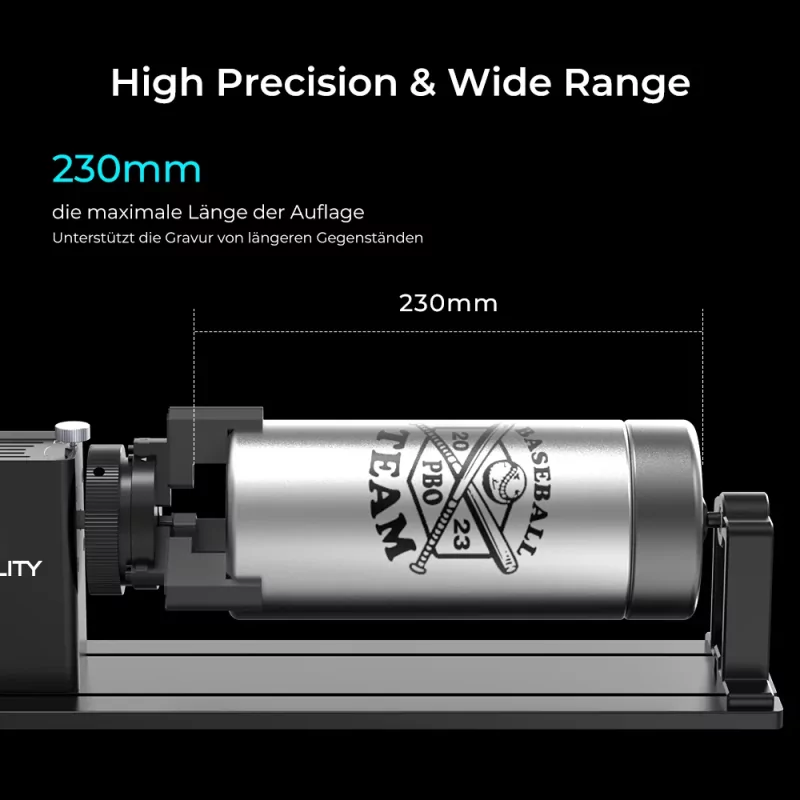 The Creality Rotary Kit Pro makes it easy to engrave cylindrical objects, round decorative objects, bottles and vases. The device is ready to use as soon as it is connected to the engraving machine and brings your objects back to life as soon as it is switched on.