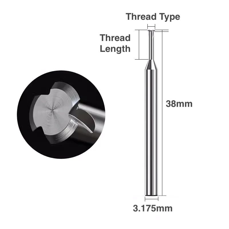 The M2.5 Thread Milling Bit (Ø 1.95 mm) x 7.5mm Makera Carvera is a CNC threading tool designed for small screws and threaded accessories. With geometry optimized for creating precise internal threads on micro metal or plastic parts, it fits easily into the spindle thanks to its 3.175 mm (1/8") shank.
