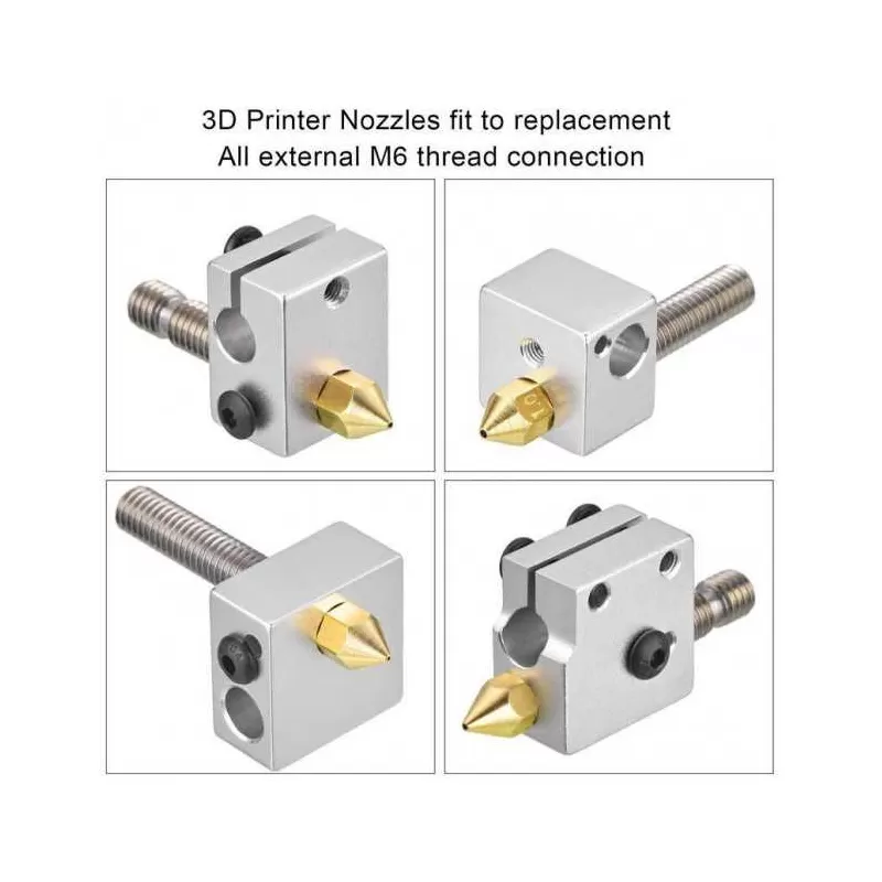 These 0.2mm brass nozzles are designed for many filament-based 3D printers and can be used with hotends that have an M6/MK8 thread.