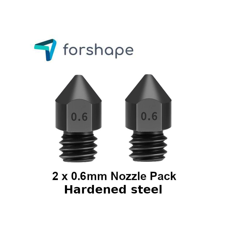 These 0.6mm Hardened Steel nozzles from Forshape are compatible with 1.75mm diameter filaments.