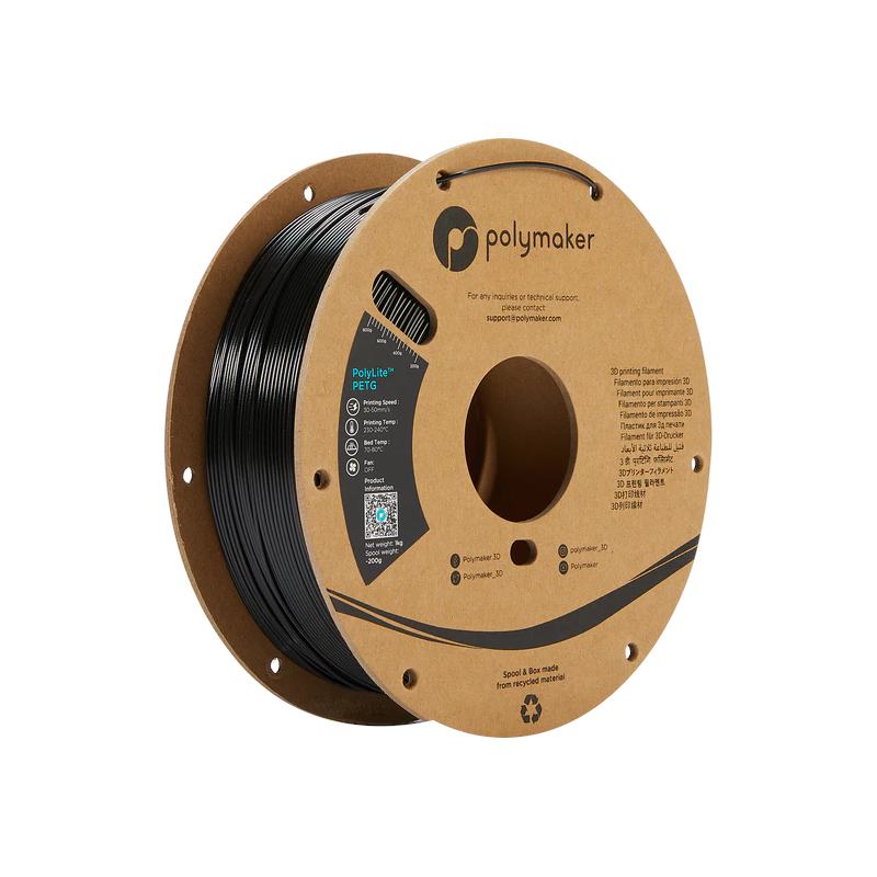 Polymaker's PolyLite PETG Black is a 3D filament printable on all 3D printers equipped with a heated bed and extruding 1.75mm or 2.85mm filament.