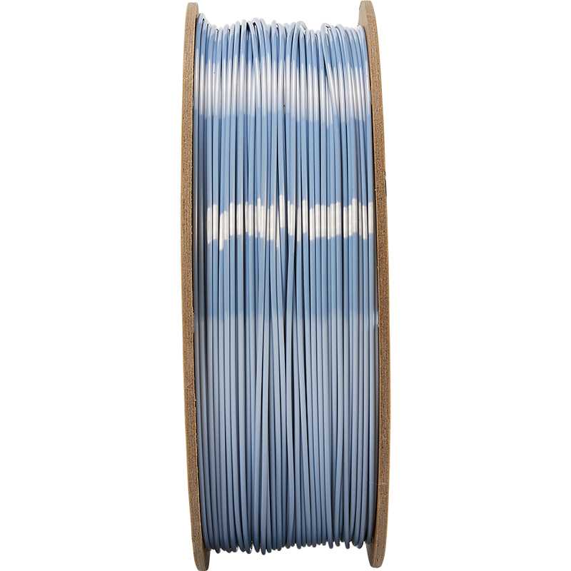 The PolyLite PLA Silk Silver filament is a type of PLA that offers a glossy Silk finish.