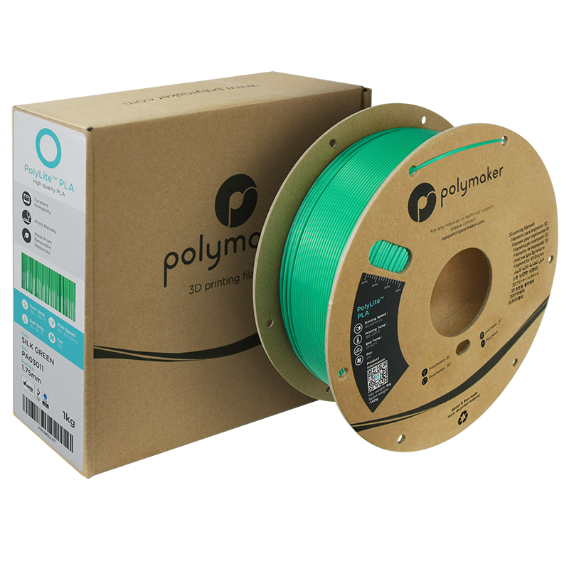 PolyLite Silk PLA Green is a glossy PLA filament with a shiny, satin-like, and silky effect. Its unique appearance and ease of printing and post-processing make it particularly suitable for figurines and decorative objects.
