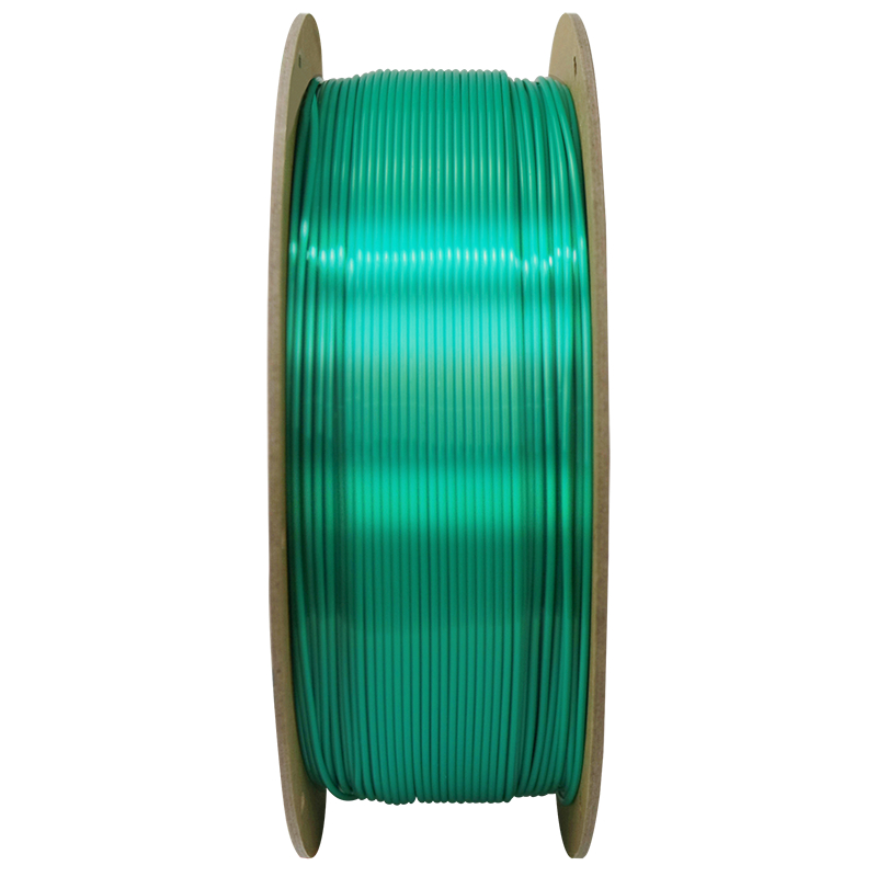 The PolyLite PLA Silk Green filament is a type of PLA that offers a glossy Silk finish.