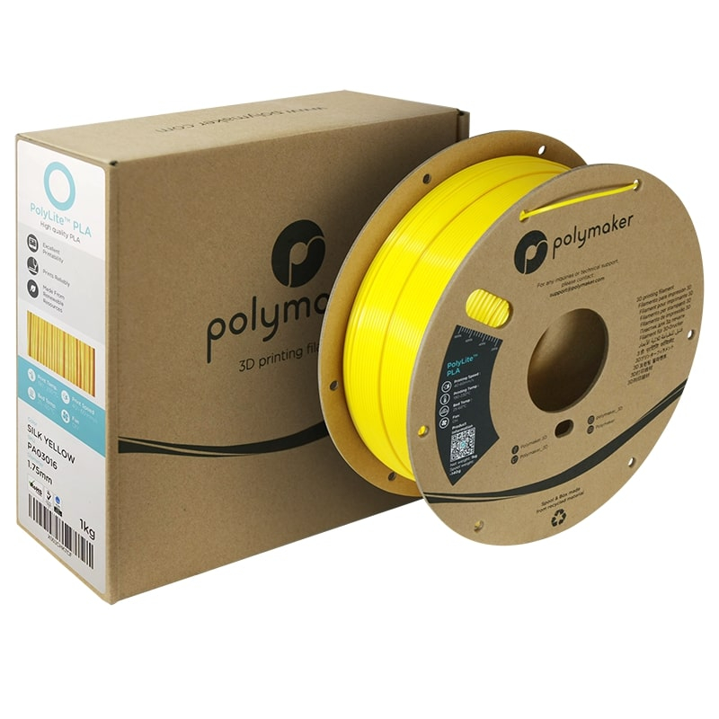 The PolyLite PLA Silk Yellow filament is a type of PLA that offers a glossy Silk finish.