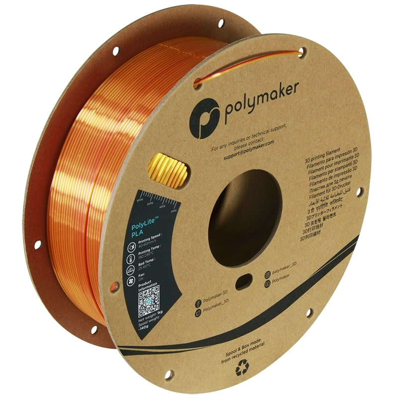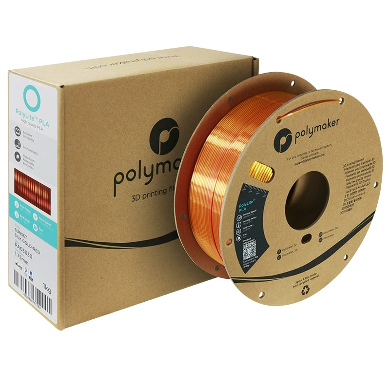 The Polylite Silk PLA Sunset Gold-Red is a PLA filament with a shiny, satin, and silky effect. Its unique appearance and ease of printing and handling make it particularly suitable for printing figurines and decorative objects.