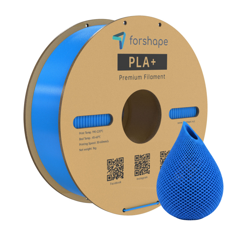 The Forshape PLA+ Light Blue filament allows you to print a very wide range of parts. PLA is the most widely used material in 3D printing, and its glossy finish gives printed objects a pleasant visual appearance.