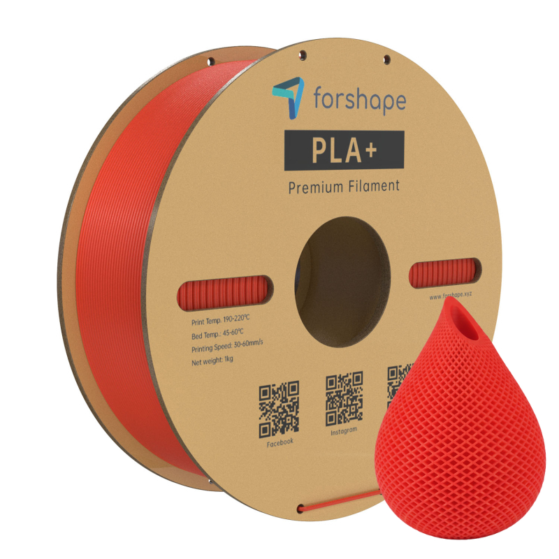 The Forshape PLA+ Red filament allows you to print a very wide range of parts. PLA is the most widely used material in 3D printing, and its glossy finish gives printed objects a pleasant visual appearance.