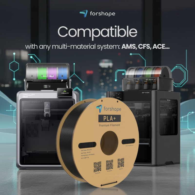 Multi-color system compatibility: PLA+ Forshape Orange is compatible with multi-spool printing systems such as AMS, CFS and ACE.