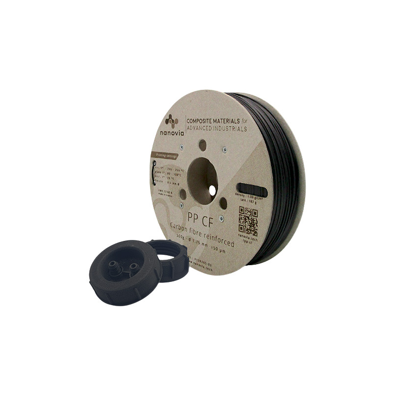 The Nanovia PP CF filament has an extrusion temperature ideally between 235 and 255°. A heating plate at 80°C to 100°C is recommended. As this material is loaded with carbon fibre, we recommend that you use a reinforced nozzle when printing.