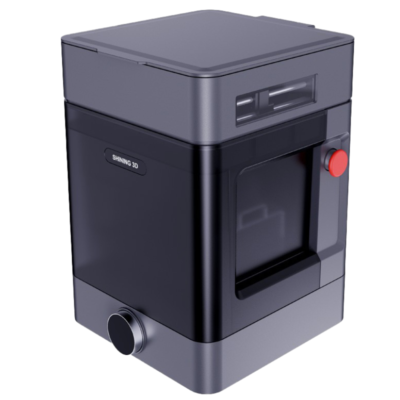 The Shining3D FabWash is a fully automated post-processing system designed for washing, drying, and releasing 3D printed parts, especially in the dental field. Thanks to a consistent and preprogrammed workflow, each material benefits from optimized treatment, reducing the risk of error and ensuring ready-to-use parts.