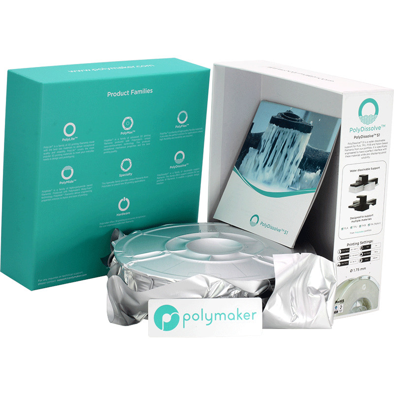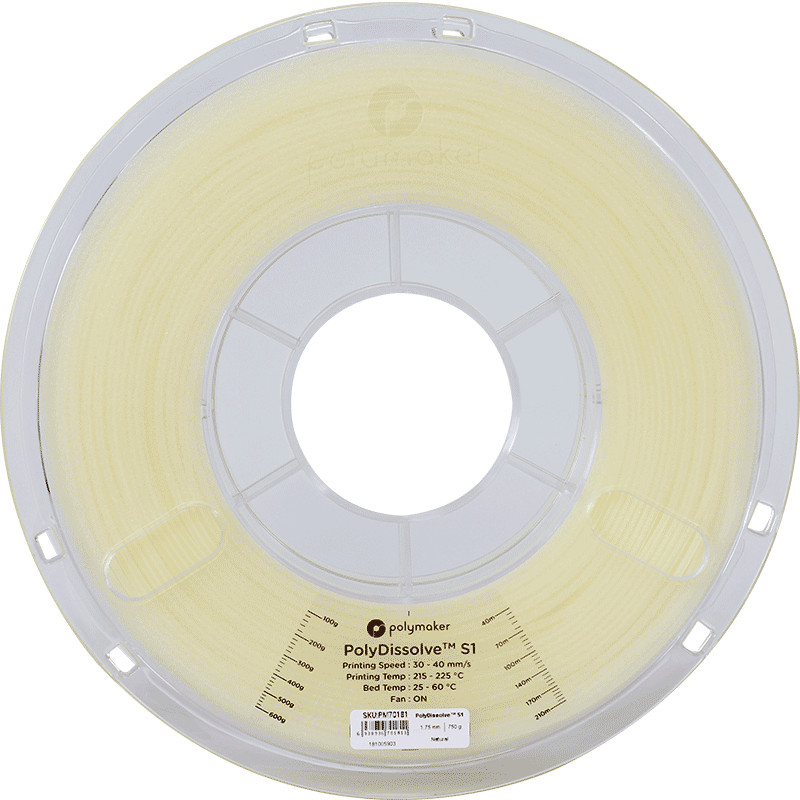 PolyDissolve S1 is a PVA-based water-soluble filament designed by Polymaker. Its compatibility with PLA, TPU, and Nylon makes it ideal for printing support structures for complex geometries with the second extruder (dual extrusion).