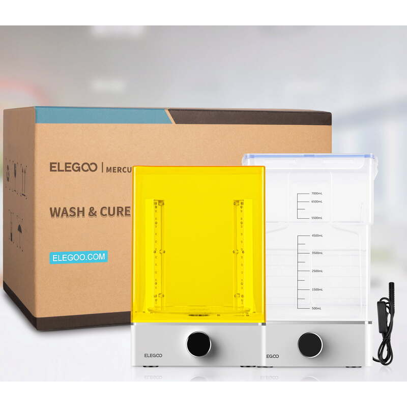 The large 7000ml capacity tank allows for direct washing of large models printed with Elegoo Saturn and Mars 3 printers, or cleaning multiple parts at once, saving time and improving productivity. The device is easy to use with a single button: press and hold to turn on the machine, then turn the button to set the appropriate washing or curing time.