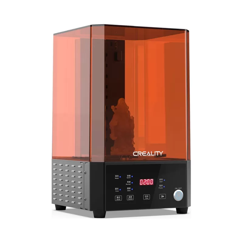 The Creality UW 01 is an all-in-one post-processing solution for resin 3D prints. It combines cleaning (WASH) and UV curing (CURE) in a single device, simplifying post-printing steps. With touch controls, you can precisely adjust the duration and speed based on your model's size.