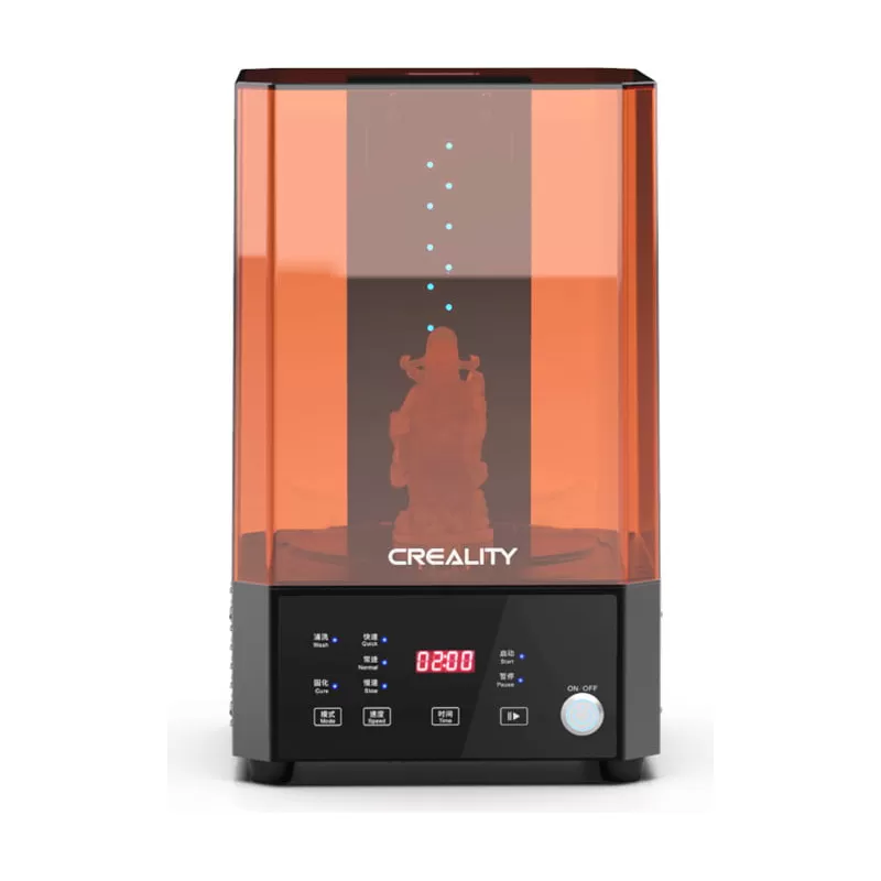 The Creality UW 01 wash and cure solution allows you to clean and cure parts printed with your LCD resin 3D printer. These post-processing steps are essential and mandatory to achieve the full properties of the resins once printed.