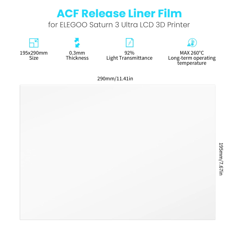 Specifications for Set of 5 ACF films, Elegoo Saturn 3, Saturn 3 Ultra