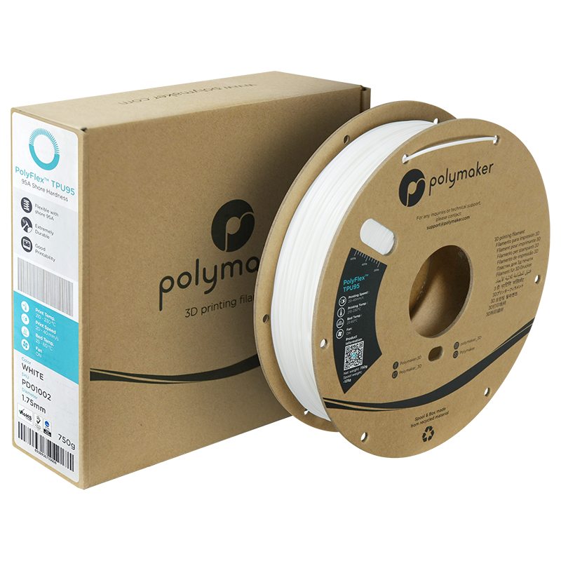 Polymaker Polyflex TPU-95A White is a highly flexible filament. Polymaker Polyflex features great elasticity and excellent tensile strength for a variety of applications.