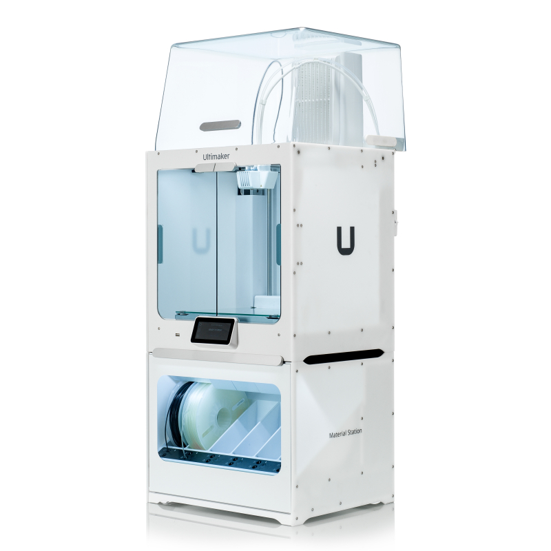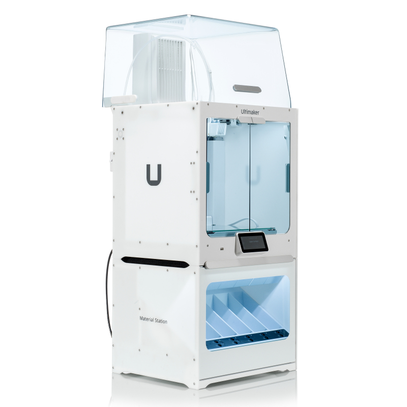 The Material Station and the Air Manager enable the Ultimaker S5 to produce 3D-printed parts and models of high quality with maximum efficiency. Together, the possibilities offered by the Ultimaker S5 Pro Bundle increase print success rates, print quality, and uptime for reliable production 24/7, while minimizing human error and operator time.