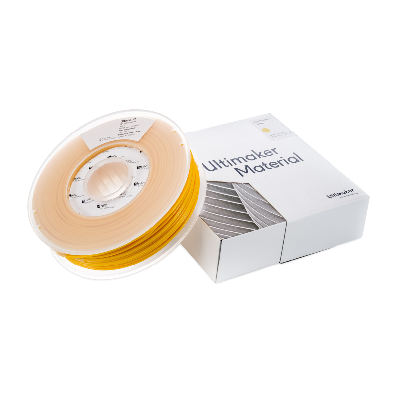 The Ultimaker PLA Yellow filament is a standard (polylactic acid) material widely used in 3D printing. It is suitable for many applications and will always have a place on your desk. It works well for printing parts that do not require high mechanical or thermal resistance and allows you to produce many parts quickly and easily, such as: