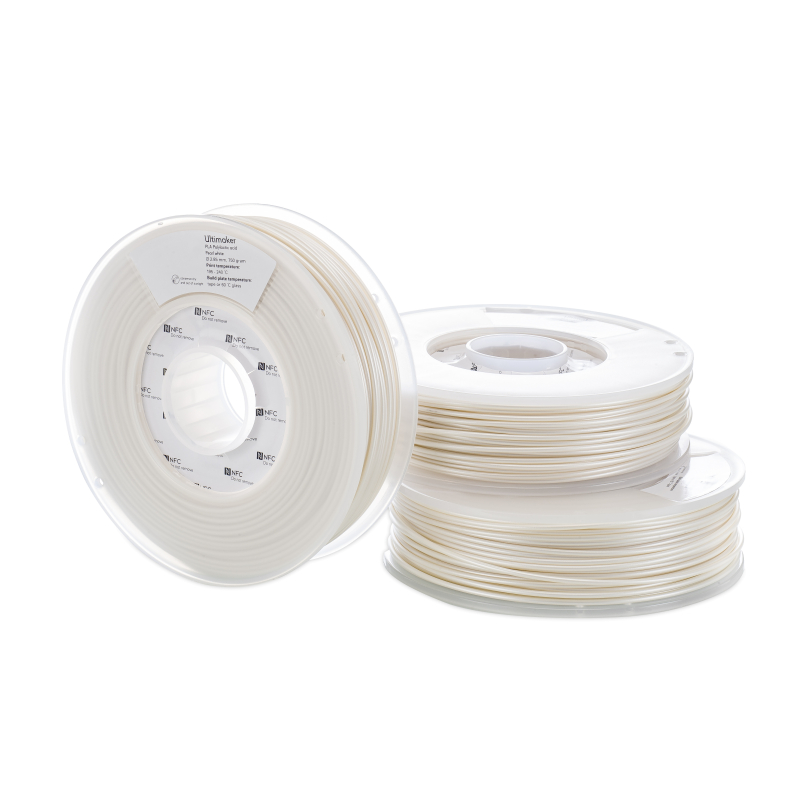 The Ultimaker PLA Pearl White is versatile, easy to print, and available in 11 colors. It prints reliably, with good dimensional accuracy and a high-quality surface finish. These properties make it an ideal material for a wide range of applications, from detailed prototypes to simple jigs or decorative objects.