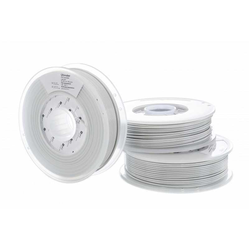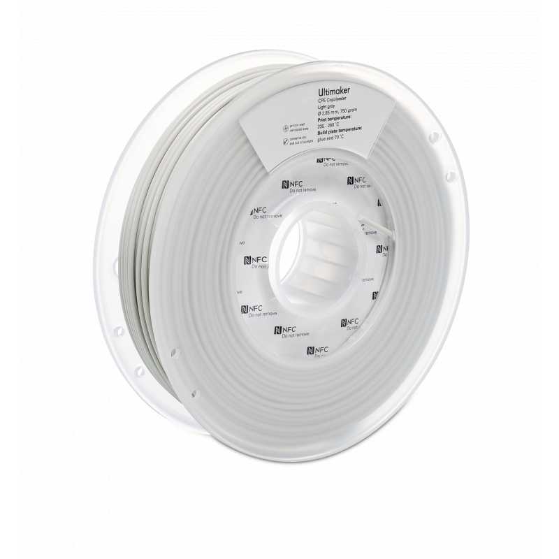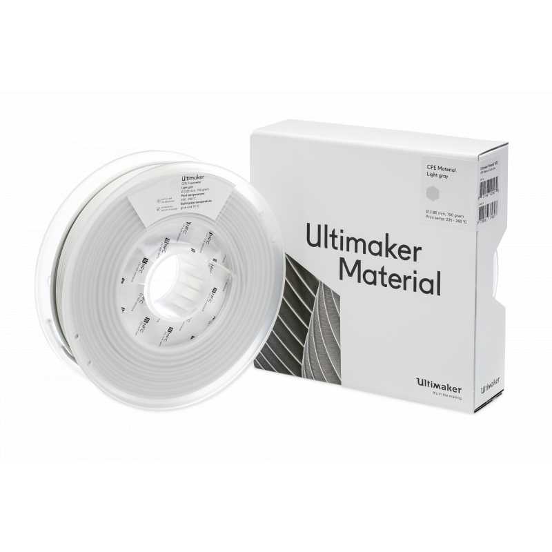 Ultimaker's CPE material is ideal when producing parts requiring mechanical properties and good chemical resistance while maintaining ease of printing. This Ultimaker CPE Light Grey filament has high flexural strength (2100 MPa) and tensile strength (38 MPa).