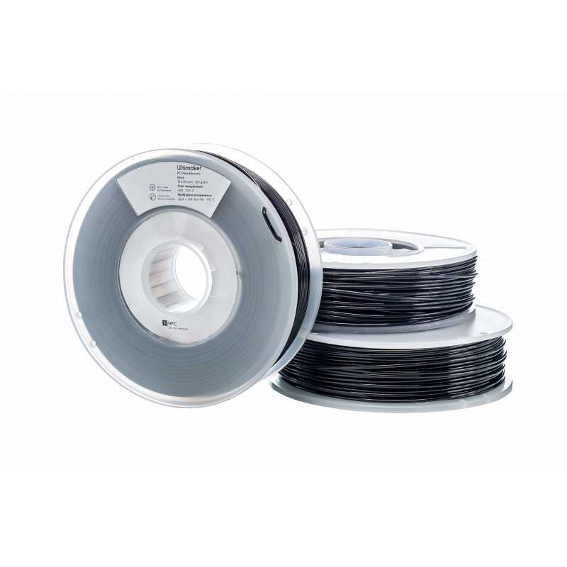 The Ultimaker PC (polycarbonate) Black filament allows you to produce strong and durable parts that maintain dimensional stability when exposed to temperatures up to 110 ºC. The properties of this material make it ideal for printing molds, tools, functional prototypes, and small-batch production parts.