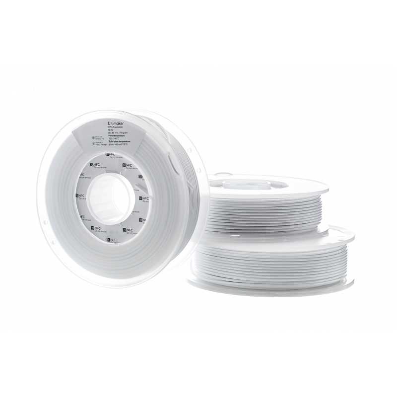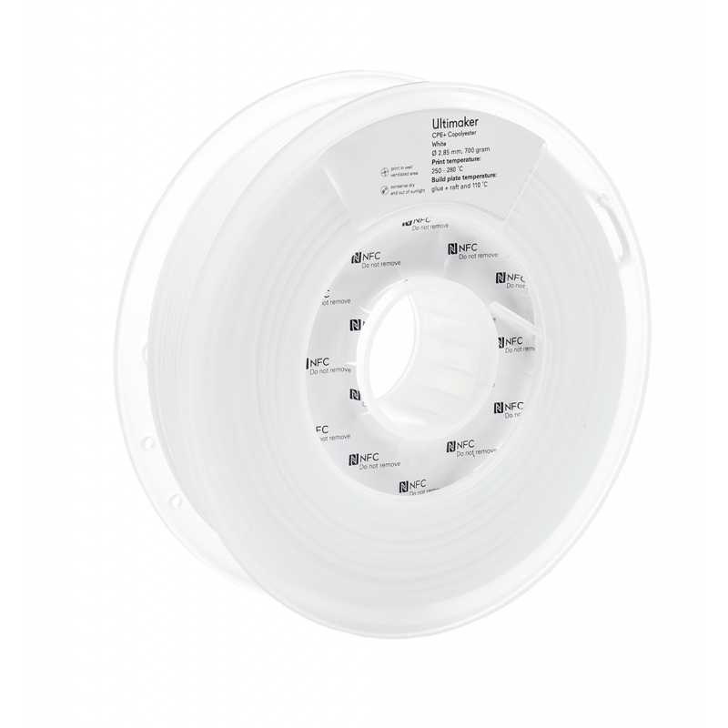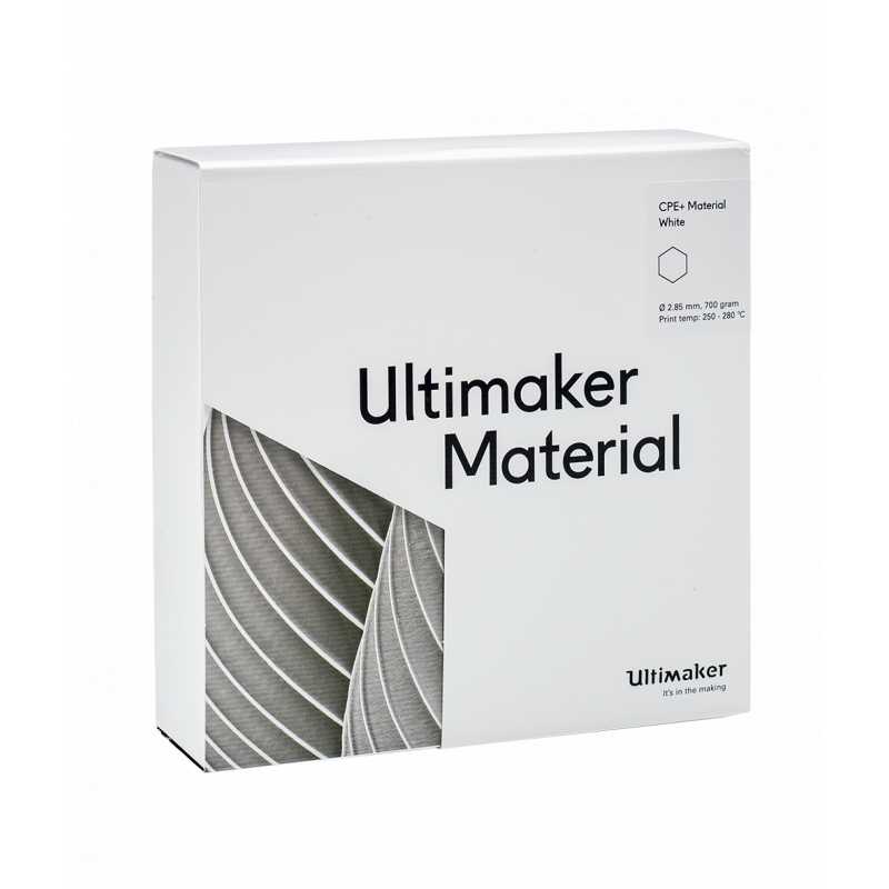 The 3D printing filament Ultimaker CPE+ White is more wear-resistant than standard CPE, designed for extremely durable and warp-resistant functional prototypes. Suitable for a wide range of applications.
