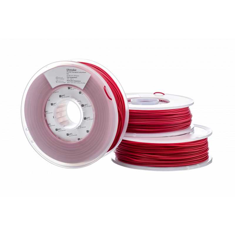 The Ultimaker TPU 95A Red is a flexible material. It is perfectly suited for applications requiring chemical resistance as well as rubber-like flexibility. To ensure smooth 3D printing, Ultimaker TPU 95A has been designed to be easier and faster to print than other TPU filaments available on the market.