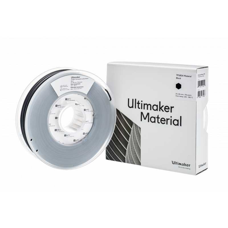 The Ultimaker TPU 95A Black is a flexible material. It is perfectly suited for applications requiring chemical resistance as well as rubber-like flexibility. To ensure smooth 3D printing, Ultimaker TPU 95A has been designed to be easier and faster to print than other TPU filaments available on the market.