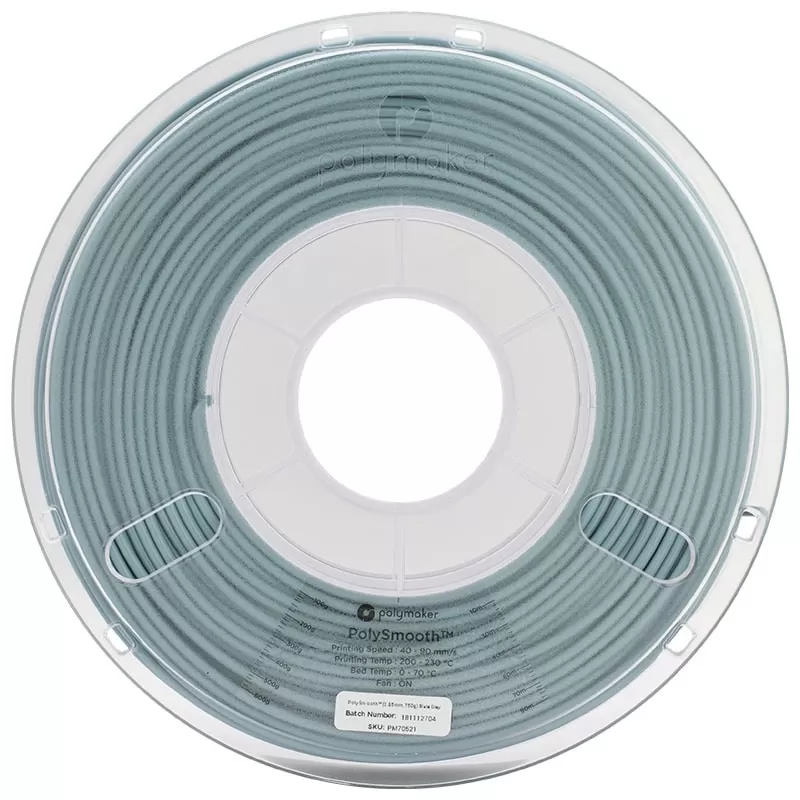 Polymaker’s Black PolySmooth prints at an extrusion temperature between 190 and 220°C, a bed temperature between 25 and 70°C, and a speed of 40 to 60mm/s. A BuildTak surface, glue stick, or tape is recommended for optimal bed adhesion.