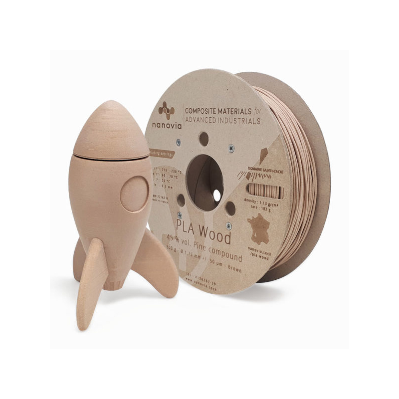 Nanovia 's PLA Wood is a filament compatible with all open 3D printers equipped with 1.75mm. extrusion. It will adhere to any type of heated platen.