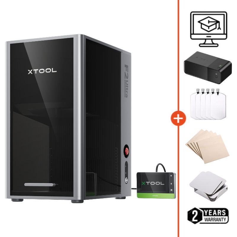 The xTool F2 Ultra (Monolaser MOPA 60W) is a precision laser engraver designed for professional users seeking advanced performance on metals. Equipped with a 60W MOPA laser, it allows fine engraving and marking on a wide range of metal materials and plastics with sharp results.