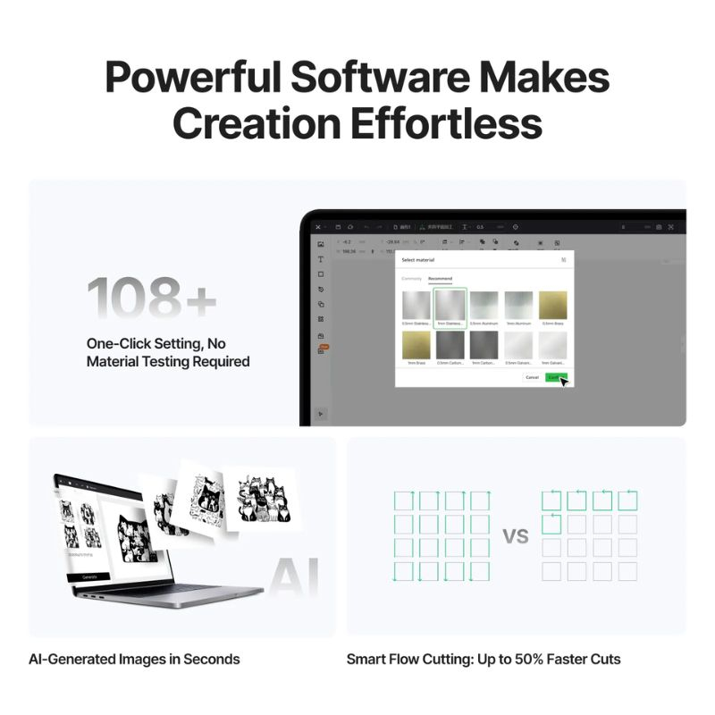With its intelligent software, the xTool MetalFab becomes a true extension of your creativity. Every feature is designed to simplify and automate key steps in your workflow.