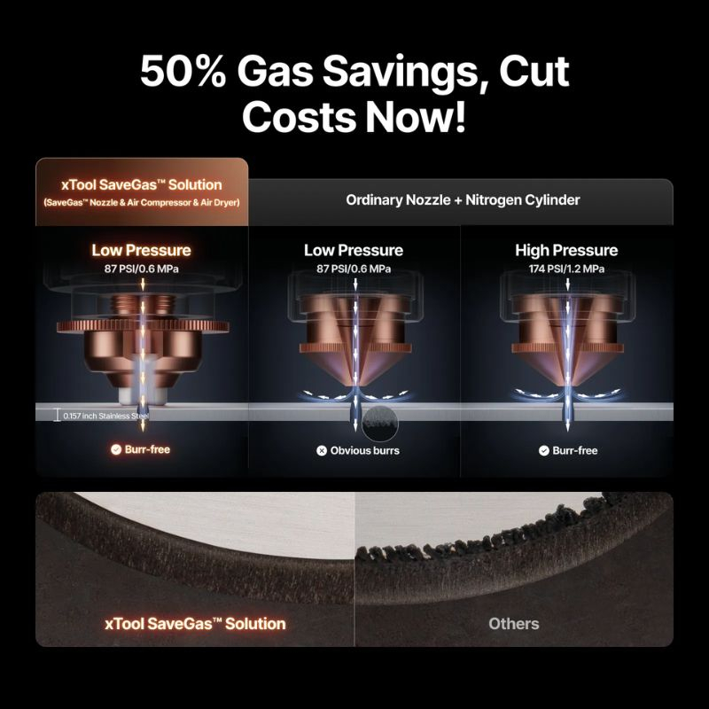 Compatible with xTool MetalFab Laser machines and the xTool SaveGas™ nozzle, the xTool Air Dryer is the ideal partner for professional metal production with compressed air.