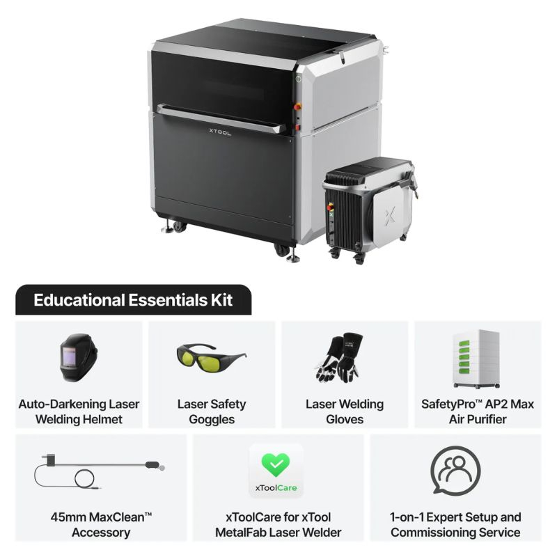 The xTool MetalFab 1200W Educational Essentials Kit is an all-in-one machine that combines laser welding, CNC cutting, and cleaning. Designed for metal professionals, it offers power, precision, and flexibility.